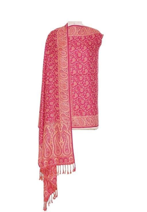 Jacquard scarf in vibrant multicolored woven jacquard in Woollen fabric , brought to you by with heteshe.com . Width Not less than 28 inches (71 cm) and Length Not less than 70 inches (177 cm)