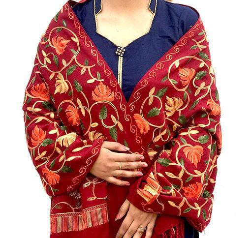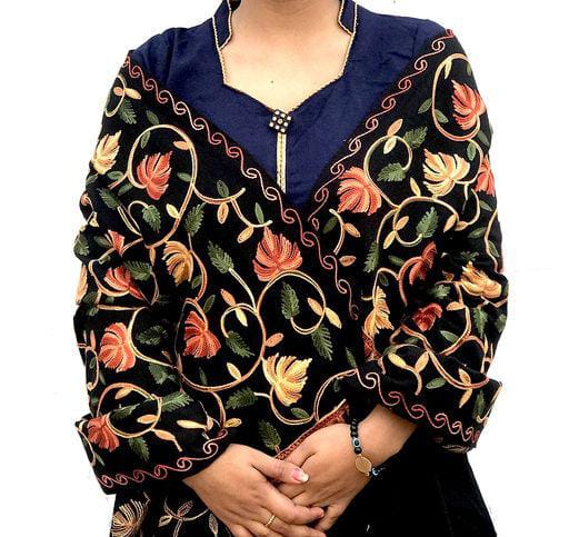 Jacquard shawl in vibrant multicolored woven jacquard in wool fabric with embroidery on it , brought to you by with heteshe.com . Width Not less than 40 inches (100 cm) and Length Not less than 80 inches (200 cm)